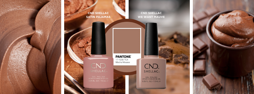 A Mocha Mousse színével a Pantone új dimenziót nyit meg a kreativitás és a stílus világában. A CND színpalettáján ehhez a legközelebb álló árnyalatok a We Want Mauve és a Satin Pajamas.